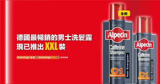 全新!Alpecin咖啡因洗髮露C1 375 ml現已在萬寧獨家發售。