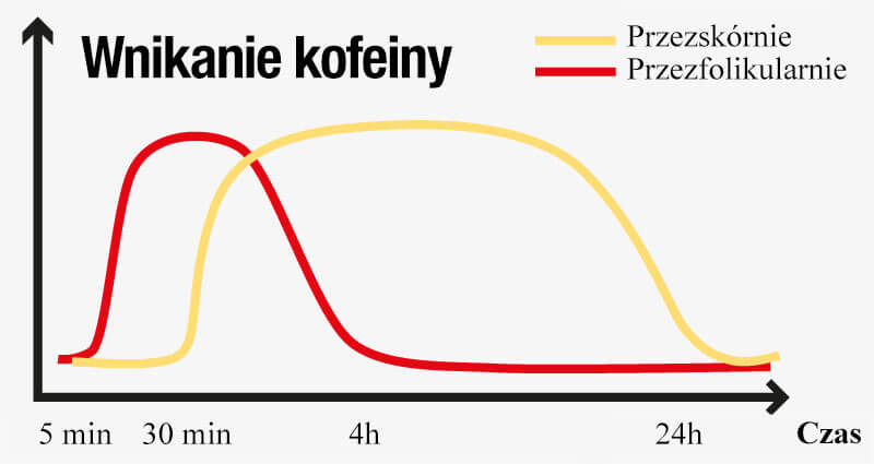 Wnikanie kofeiny do skóry i mieszków włosów w ciągu 24 godz.