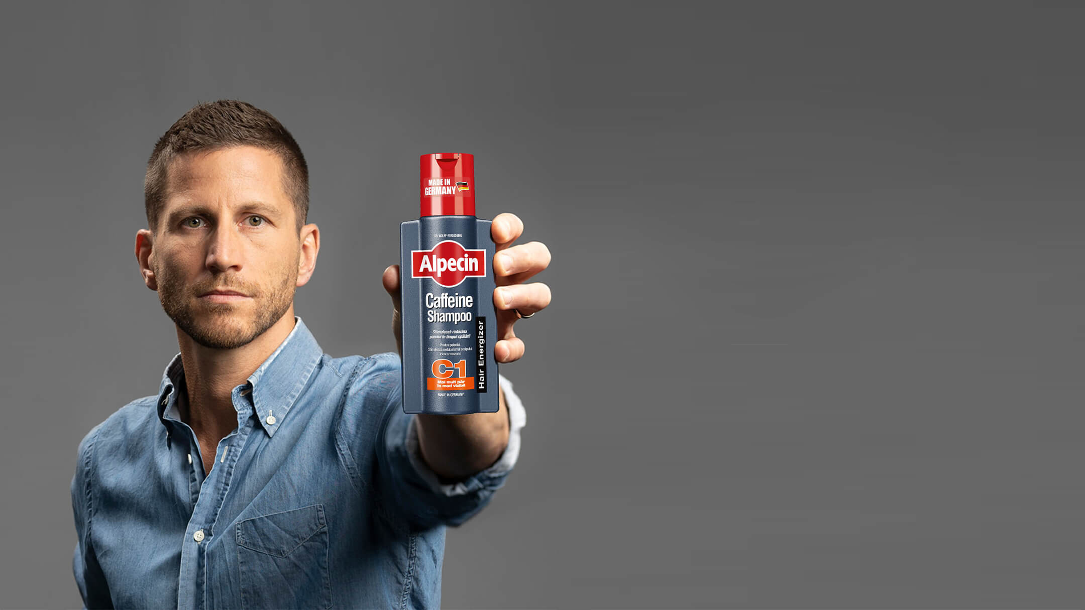 Cafeina din șamponul Alpecin ajunge la rădăcina părului în 2 minute – acolo își face efectul.