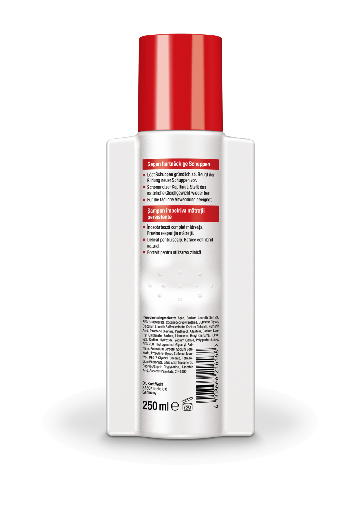 Două ingrediente active formează împreună un sistem fiabil de protecție împotriva mătreții: șamponul Alpecin Dandruff Killer calmează iritația scalpului, îndepărtează mătreața și previne reapariția acesteia.