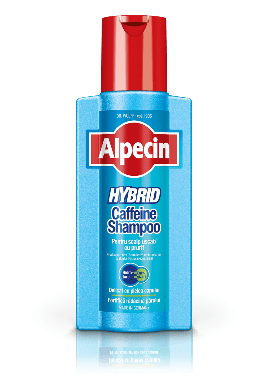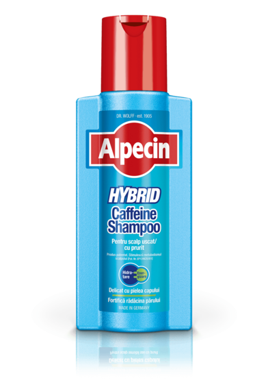Alpecin Hybrid Caffeine Shampoo a fost creat special pentru un scalp uscat și sensibil. Tehnologia specială de tip hibrid combate concomitent atât mătreața, cât și pruritul. Șamponul curăță părul într-un mod foarte delicat, în timp ce hidratează și calmează scalpul. Cafeina, ingredientul energizant din Alpecin Hybrid penetrează însă totuși scalpul pentru a ajunge la rădăcina firelor de păr. Acolo, aceasta fortifică rădăcina firelor de păr și previne căderea părului din cauze ereditare.