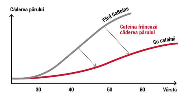 În timpul vieții, 80% dintre bărbați sunt afectați de căderea ereditară a părului. S-a demonstrat eficiența cafeinei în prevenirea căderii părului, păstrându-l pe scalp o perioadă mai lungă de timp.