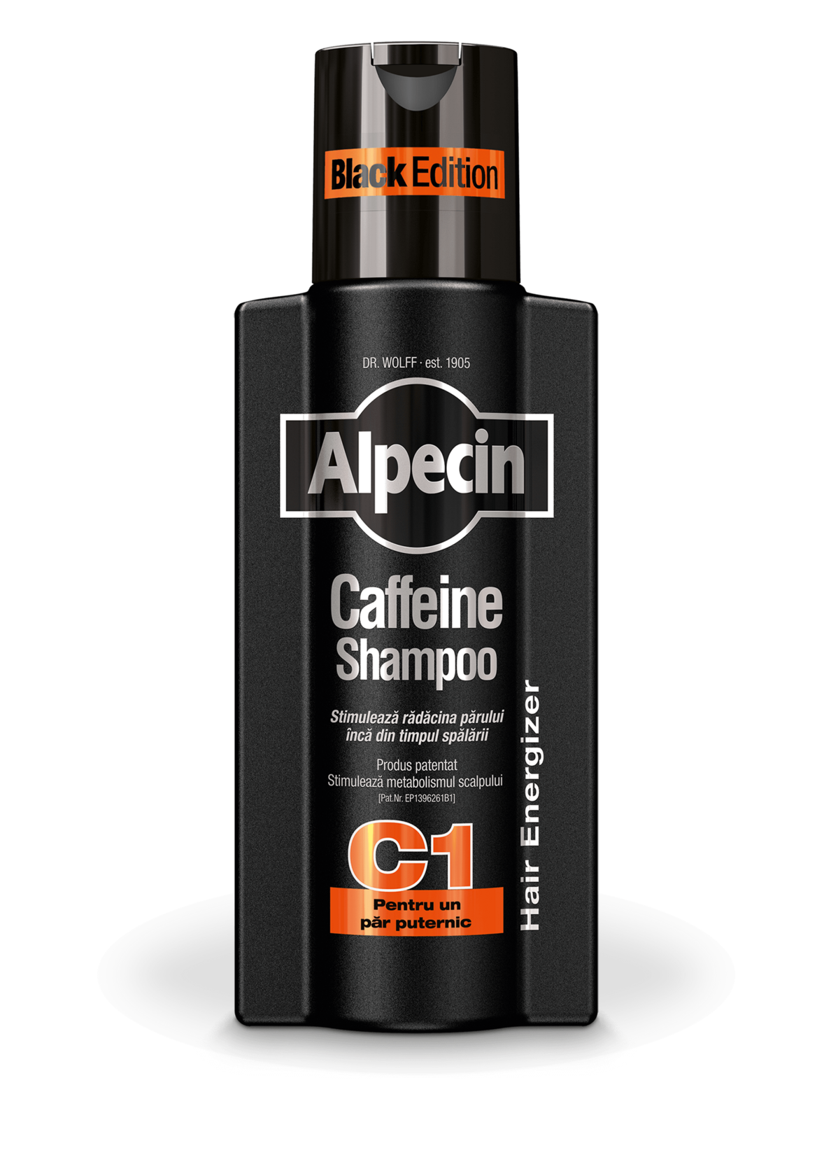 - Black Edition a celui mai bine vândut* șampon pentru bărbați din Germania: Alpecin Caffeine Shampoo C1.