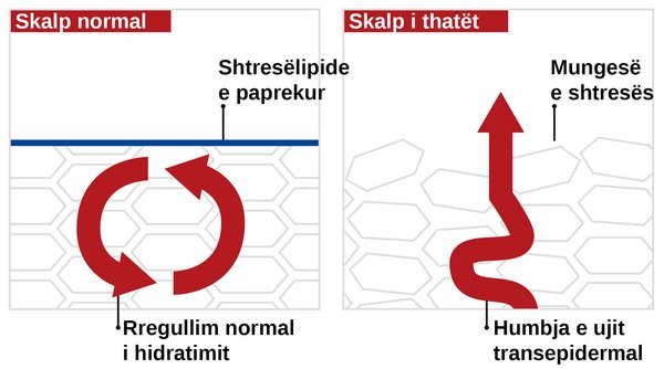 Skalpi i shëndetshëm është i rrethuar nga një shtresë e paprekur lipide. Kjo e rregullon lagështinë dhe e mbron skalpin. Nëse kjo shtresë lipidesh është e çrregulluar, lëkura humb lagështinë dhe thahet. Një shkak i mundshëm është nënprodhimi i gjëndrave dhjamore të cilat mund të bëjnë që skalpi të humbasë ekuilibrin natyror. Skalpi i thatë dhe i ndjeshëm nuk mund të përmbushë më funksionin e tij mbrojtës. Pasojat: Kruajtje dhe zbokth.